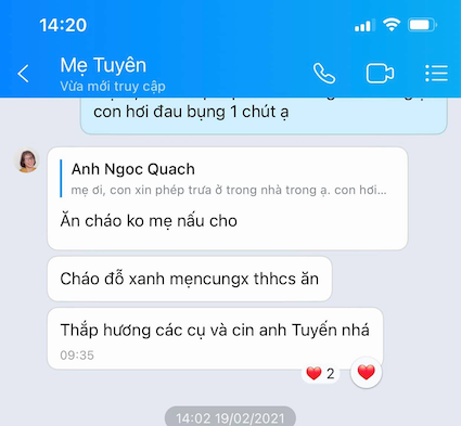 Dưới đây là một chút hình ảnh và hội thoại của mình với mẹ Tuyên yêu dấu.