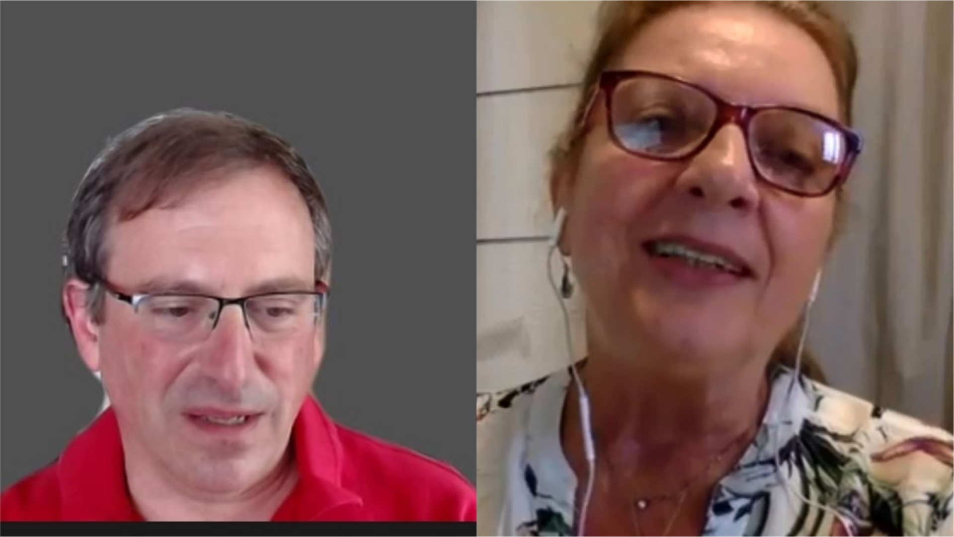 Tiến Sĩ Marc Lipsitch (trái) và Tiến Sĩ Rosane Guerra. (Hình: Chụp từ màn hình Zoom)