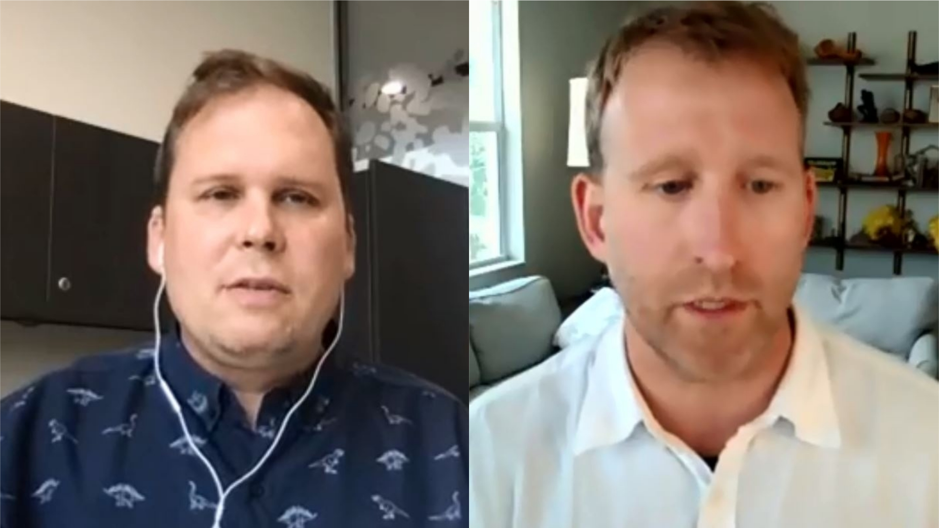 Tiến Sĩ Ben Neuman (trái) và ông Peter Maybarduk. (Hình: Chụp từ màn hình Zoom)