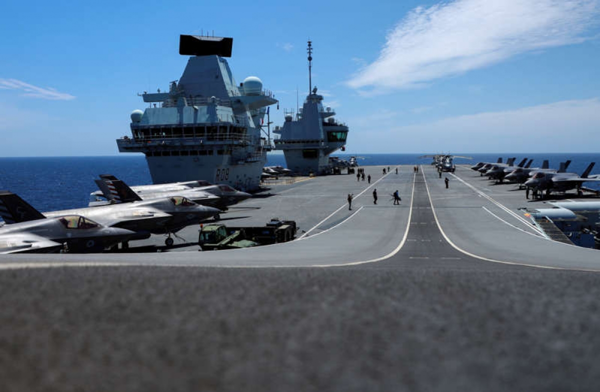 Tàu sân bay Anh HMS Queen Elizabeth tập trận cùng NATO ở Địa Trung Hải trước chuyến đi tới Biển Đông. Ảnh: Reuters