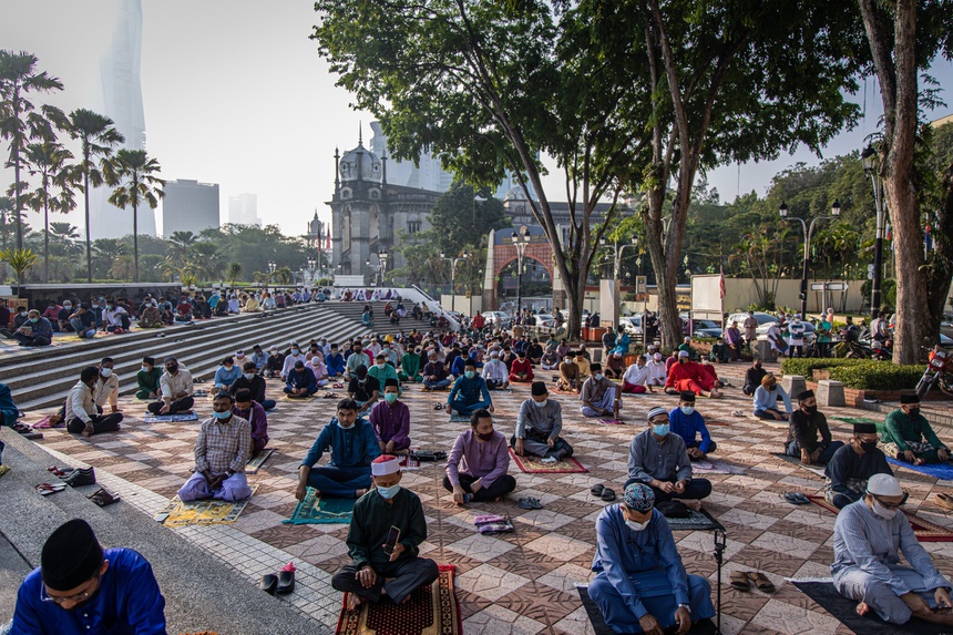 Tín đồ Hồi giáo cầu nguyện ở thủ đô Kuala Lumpur, Malaysia vào tháng 5. Ảnh: Getty.