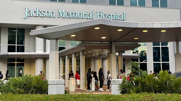 Bạn bè và người thân các nạn nhân vụ xả súng đứng chờ bên ngoài một bệnh viện ở Miami, Florida. Ảnh: Miami Herald