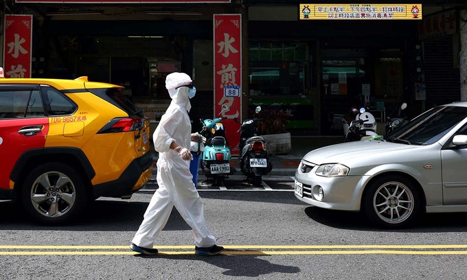 Một người mặc đồ bảo hộ đi trên đường tại Đài Bắc, Đài Loan, hôm 2/6. Ảnh: Reuters.
