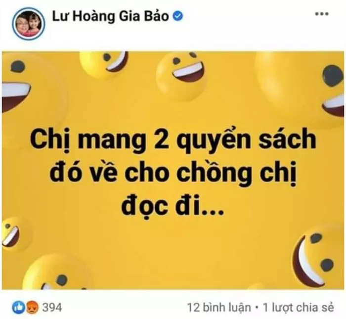 Nội dung post như sau: "Chị mang 2 quyển sách đó về cho chồng chị đọc đi". Lập tức post này tạo viral cực mạnh. Các "thánh hóng" liên tục lan truyền và tò mò xem người trong cuộc sẽ phản ứng ra sao.