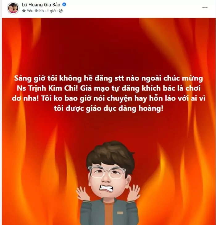 Ngay khi hình ảnh được lan truyền, vì không muốn "nằm không cũng dính đạn", Gia Bảo đã lên tiếng đính chính trên trang cá nhân.