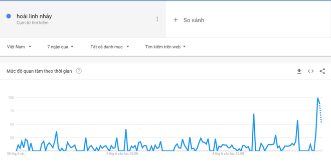 Từ khóa "Hoài Linh nhảy" bất ngờ tăng vọt trong 2 ngày cuối tuần.