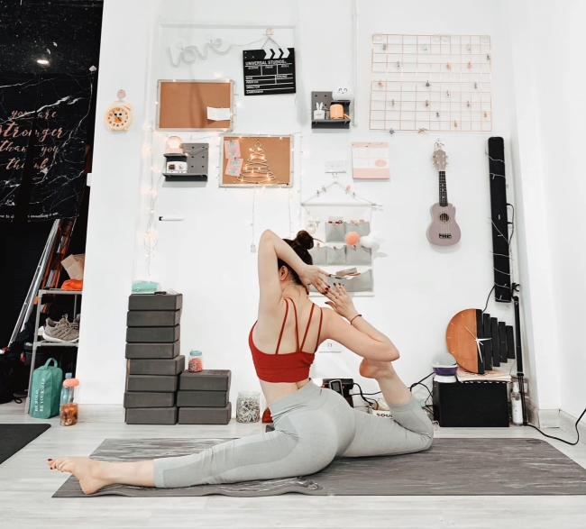 Người đẹp sinh năm 1988 rất tích cực rèn luyện vóc dáng với nhiều bộ môn như gym, yoga, múa cột, múa truyền thống.