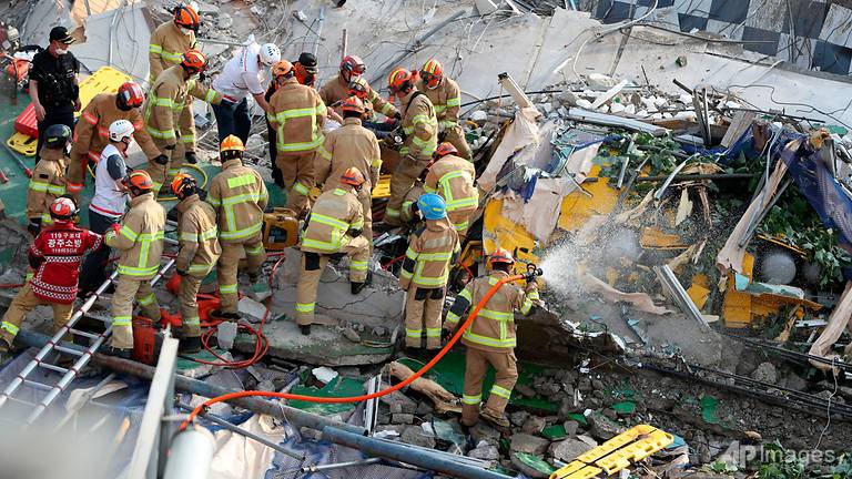 Truyền thông Hàn Quốc cho biết tòa nhà này đang trong quá trình bị phá dỡ. Bê tông từ tòa nhà đổ xuống đoạn đường ở khu vực lân cận, chôn vùi chiếc xe bus đang đỗ ở một điểm dừng gần công trường.