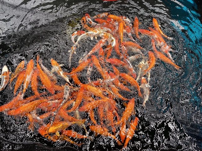 Thế nhưng, lứa cá đầu tiên lớn nhanh như thổi, chỉ sau vài tháng, khi đàn cá Koi được khoảng 0,8-1kg/con thì được khách đến đặt mua hết với giá 150.000 đồng/kg. Trừ chi phí, lứa cá đầu tiên anh thu về được 350 triệu đồng.