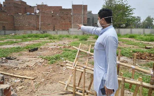 Ông Kumar chỉ vào khu đất từng là các giàn thiêu xác nạn nhân Covid-19. Ảnh: The Hindu.