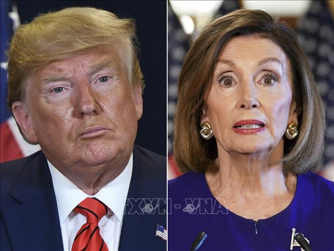 Chủ tịch Hạ viện Mỹ Nancy Pelosi (phải) và cựu Tổng thống Mỹ Donald Trump. Ảnh: AFP/TTXVN