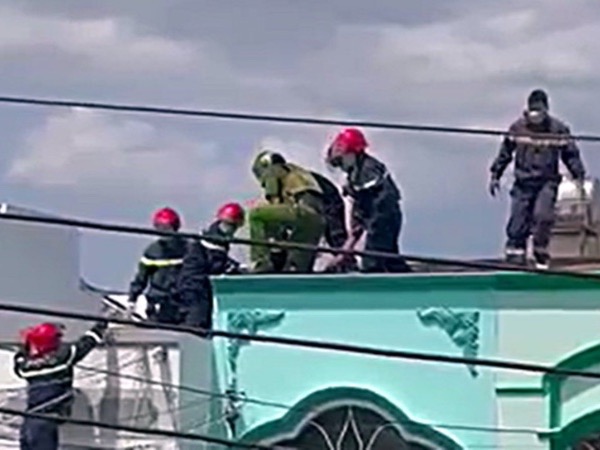 Trưa cùng ngày, Phòng Cảnh sát PCCC và cứu hộ cứu nạn Công an Bình Thuận nhận tin báo có một thanh niên leo lên nóc nhà của một người dân ở khu phố 6, phường Phú Tài (Phan Thiết).