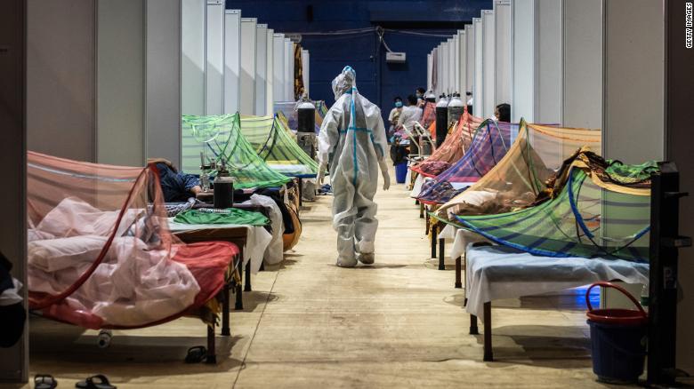 Nhân viên y tế đang đi kiểm tra giường bệnh của các bệnh nhân Covid-19. Ảnh: CNN.