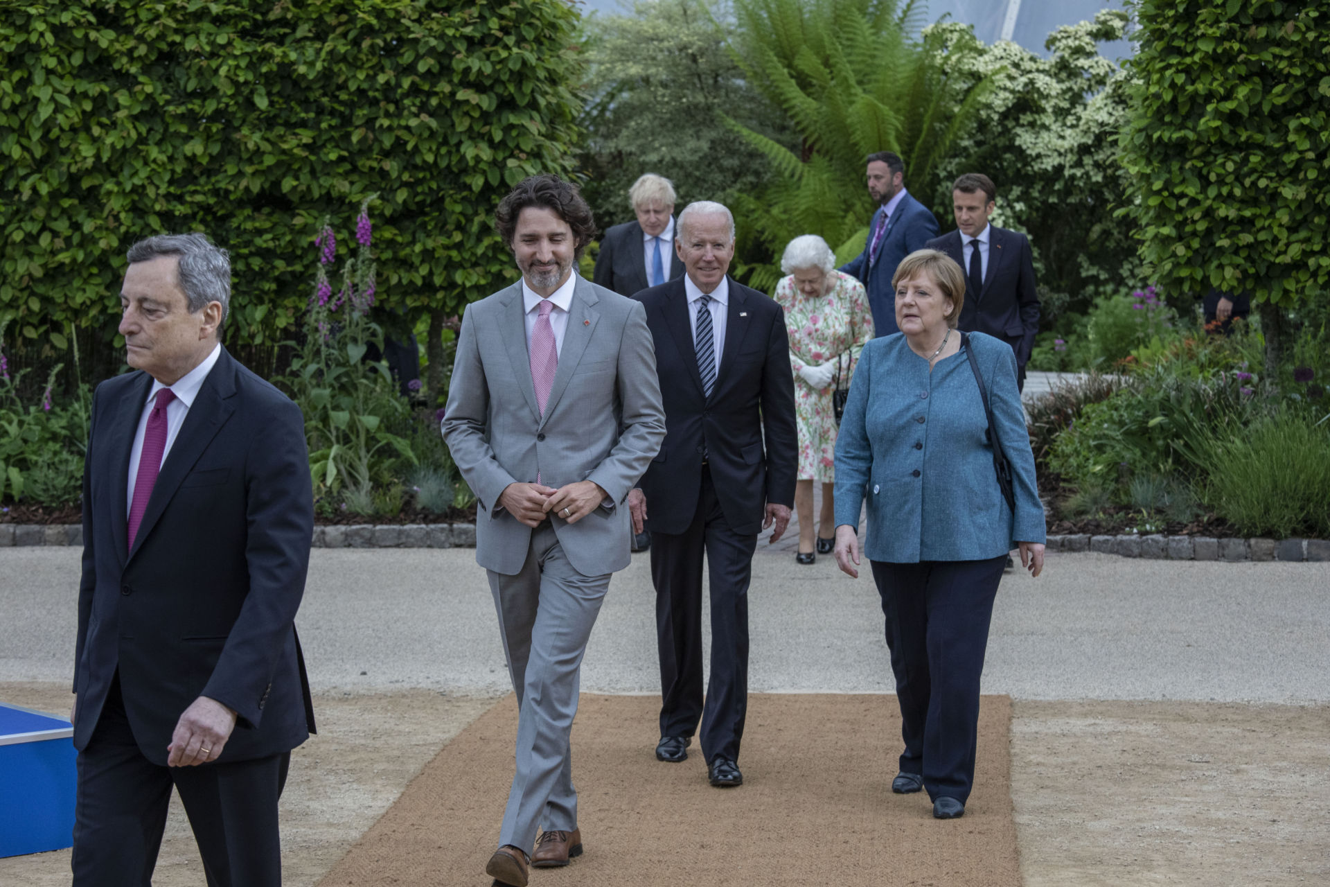 Tổng Thống Joe Biden cùng các nhà lãnh đạo khối G7 tại Anh. (Hình: Jack Hill – WPA Pool / Getty Images)