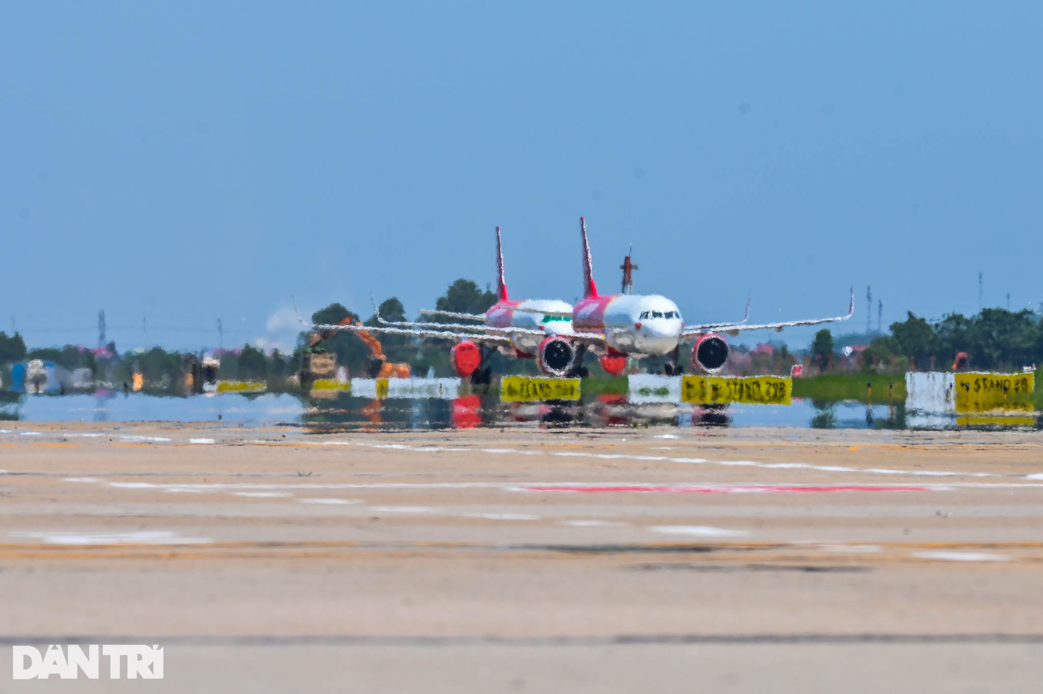 Nhiệt độ lên cao, trời nắng nóng gay gắt, xuất hiện ảo ảnh bằng mắt thường có thể nhìn thấy mặt sân đỗ như được đổ nước.