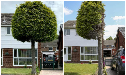 Bức ảnh bất ngờ thu hút sự quan tâm khắp nước Anh. Đó là bức ảnh về chiếc cây bị cắt trụi một nửa. Nó trở thành điểm thu hút người hiếu kỳ trong khu dân cư ở Nam Yorkshire, Anh sau một cuộc tranh chấp giữa những người hàng xóm.