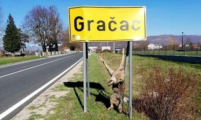 Xác chó sói treo ở tấm biển chỉ đường bên ngoài một thị trấn nhỏ ở Croatia cho thấy nông dân địa phương đã bị dồn nén quá mức.