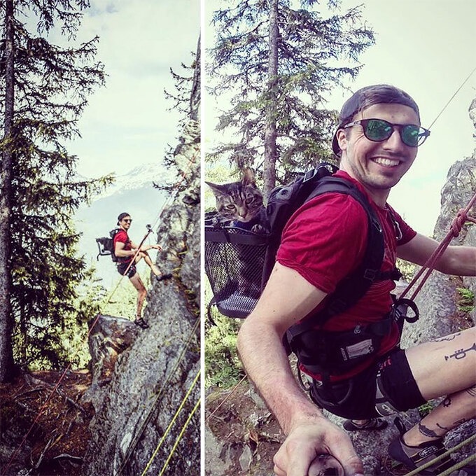 Nhiều du khách thích đem thú cưng đi cùng trong những chuyến khám phá. Rémy Vicarini (Pháp) là một ví dụ điển hình vì 6 năm liên tiếp anh đem chú mèo Cathode của mình đi khắp nơi và thử đủ trò mạo hiểm.
