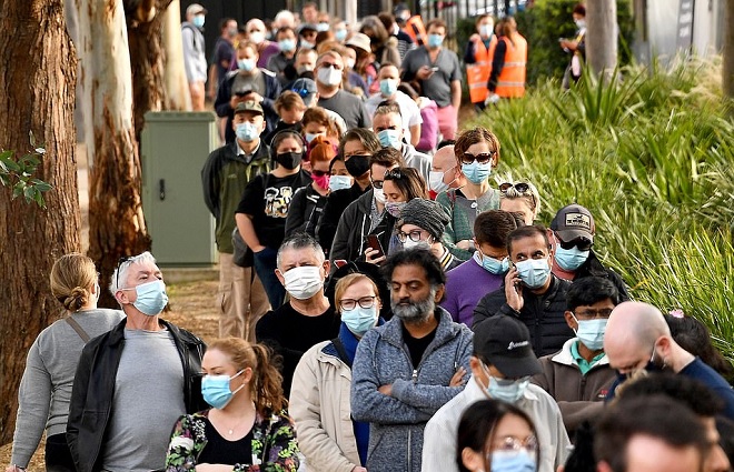 Dòng người xếp hàng chờ tiêm vaccine ở Sydney, Úc.