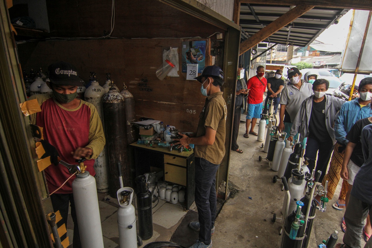 Ở thủ đô Jakarta, người dân phải xếp hàng dài chờ nạp đầy các bình oxy mang về cho người bệnh. Đến ngày 25/6, khoảng khoảng 90% số giường bệnh tại đây đã kín chỗ. Thủ đô của Indonesia cũng là địa phương có số ca tử vong cao nhất trên cả nước với hơn 8.000 trường hợp.