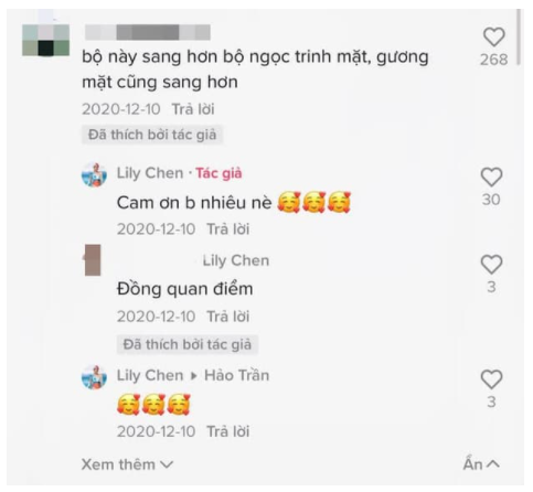 Ngay sau lời bình luận này, cô nàng đã thả icon mặt trái tim, đồng thời cũng gửi lời cảm ơn: "Cảm ơn bạn nhiều nè". Không chỉ vậy, cũng có rất nhiều người khác đồng tình với quan điểm trên và khẳng định kèo này Ngọc Trinh đã hoàn toàn "lép vế" trước Lily Chen.