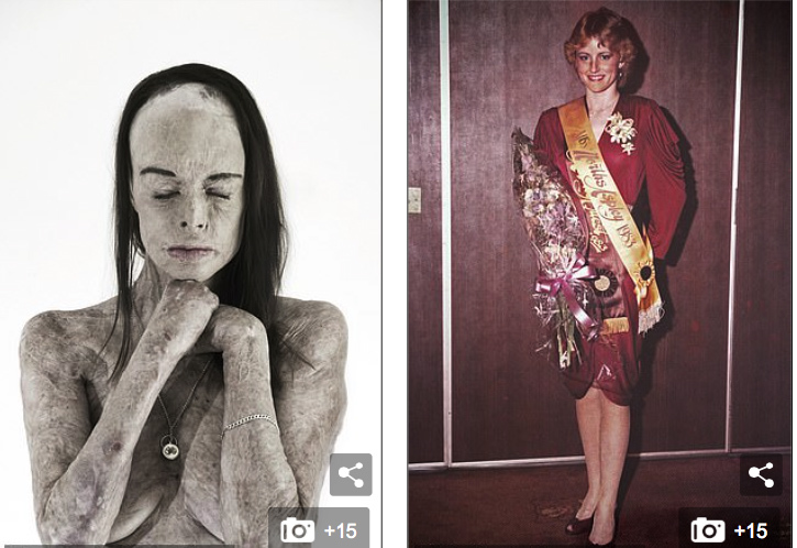Carol Mayer, năm nay 53 tuổi, từng là quán quân cuộc thi sắc đẹp thành phố Cairns, bang Queensland, Australia trước khi là nạn nhân của một vụ hoả hoạn kinh hoàng vào năm 2000.