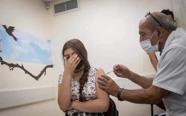 Một thiếu nữ Israel được tiêm vắc-xin Covid-19 ở thành phố Jerusalem, Israel, hôm 24/6. Ảnh: Flash90