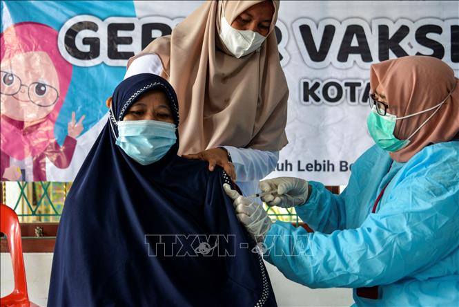 Một điểm tiêm chủng vaccine ngừa COVID-19 tại Banda Aceh, Indonesia, ngày 28/6/2021. Ảnh: AFP/TTXVN