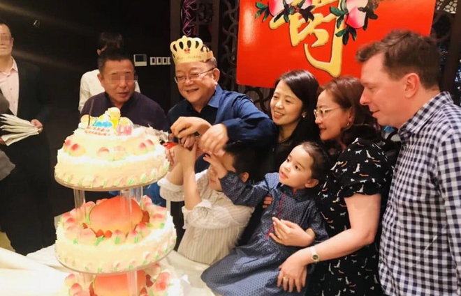 Vương Cương vui vầy bên người vợ thứ ba, con trai và gia đình của cô con gái lớn.