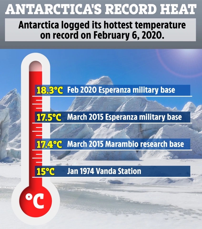 Sau hơn một năm trời điều tra. Mới đây WMO chính thức xác nhận và thiết lập kỷ lục nhiệt độ cao nhất từ trước đến nay. Nơi đây được xem là lạnh nhất thế giới này với mức nhiệt là 18,3 độ C được đo vào ngày 6/2/2020. Được biết, kỷ lục nhiệt độ trước đó cũng được đo tại căn cứ Esperanza trên bán đảo Trinity, Nam Cực là 17,5 độ C vào ngày 24/3/2015.