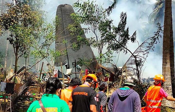 Theo một quan chức, ít nhất 45 người đã thiệt mạng và hàng chục người bị thương sau khi chiếc Lockheed C-130 Hercules của Không quân Philippines chở binh sĩ bị rơi khi đang chuẩn bị hạ cánh xuống sân bay Solo. Chiếc máy bay đã rơi xuống làng Bangkal, thuộc thị trấn miền núi Patikul ở tỉnh Sulu, và bốc cháy.