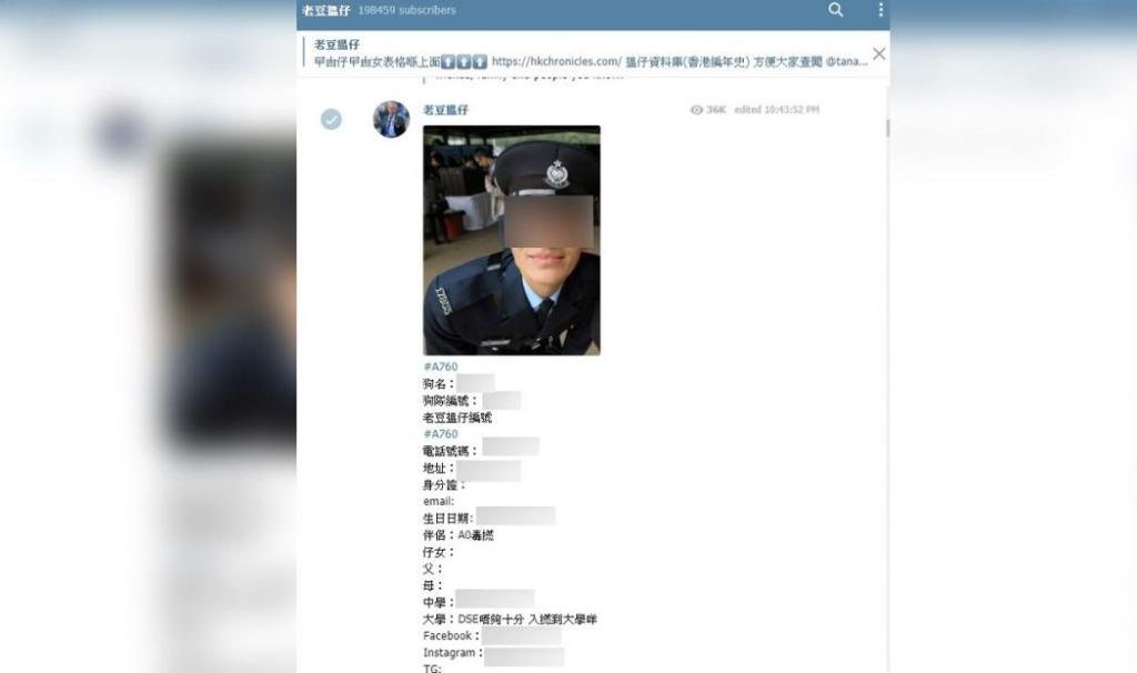 Trong giai đoạn xảy ra phong trào biểu tình rầm rộ ở Hồng Kông từ năm 2019-2020, một tổ chức ghi nhận tổng cộng 5.400 vụ tiết lộ thông tin cá nhân trên mạng xã hội. Trong số này, 38% số trường hợp liên quan cảnh sát và thân nhân và 30% liên quan người ủng hộ cảnh sát hoặc chính quyền Hồng Kông.