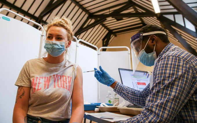 Một người được tiêm vaccine Covid-19 tại London, Anh, tháng 6/2021. Ảnh: Zuma Press