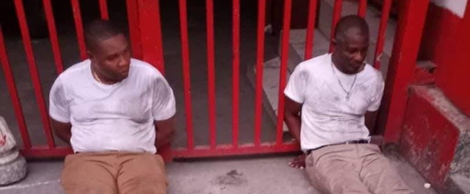 Các hình ảnh lan truyền trên mạng xã hội cho thấy, hai người đàn ông da màu được cho là nghi phạm ám sát Tổng thống Moise bị lực lượng an ninh Haiti khống chế vào chiều 7/7.