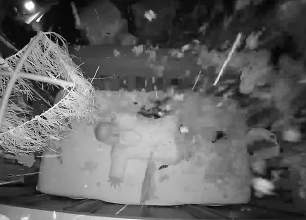 Toàn bộ khoảnh khắc kinh hoàng xảy ra hôm thứ Sáu (2/7) tại một ngôi nhà ở Prairieville, Louisiana, Hoa Kỳ đã được camera lắp đặt bên trong ghi lại. Được hay thời điểm đó, cặp đôi Courtney và Kale Buchholtz đang ngồi ở phòng khách còn cậu con trai Cannon 5 tháng tuổi của họ đang ngủ ngon lành bên trong chiếc nôi ở phòng cạnh bên.