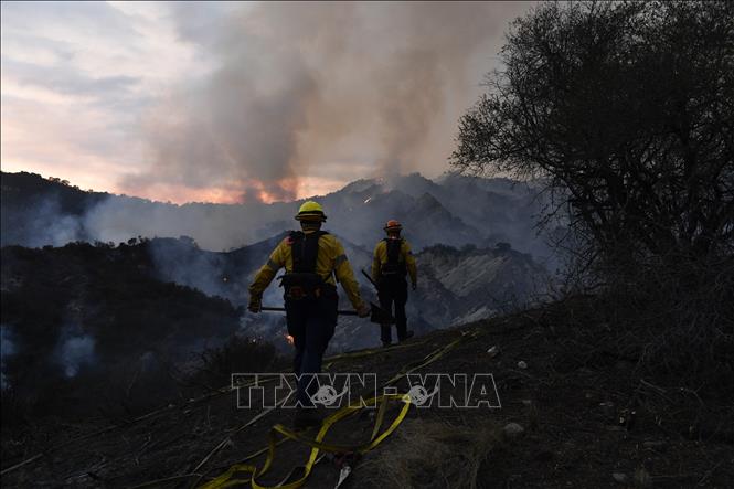 Lực lượng cứu hỏa nỗ lực khống chế các đám cháy rừng tại Công viên quốc gia Topanga, Los Angeles, California, ngày 15/5/2021. Ảnh: AFP/TTXVN