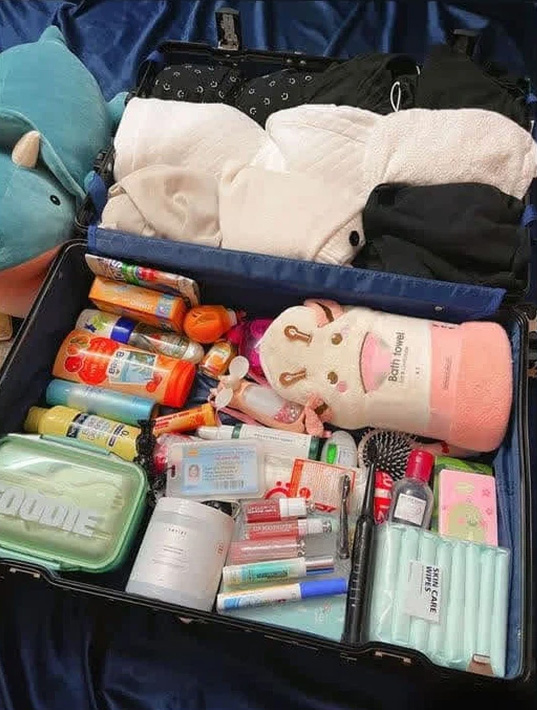 Học quân sự cũng phải đẹp, cô nàng đã vác nguyên cả một vali chứa toàn đồ... skincare, make-up khiến bạn bè được phen "ngã ngửa".