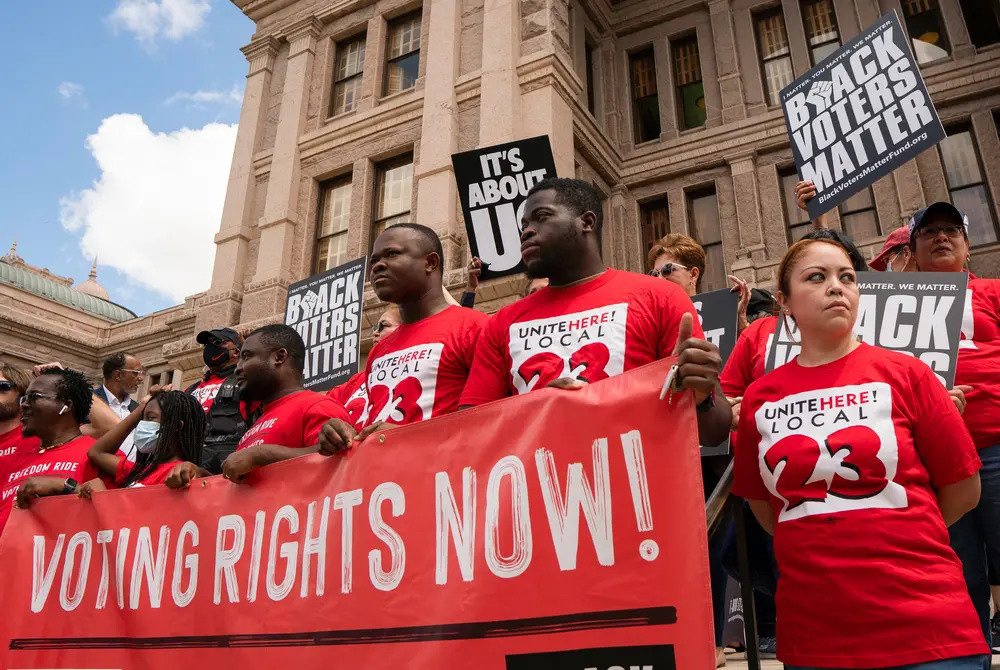 Cử tri Dân chủ Texas phản đối dự luật về bầu cử. Ảnh: Texas Tribune.