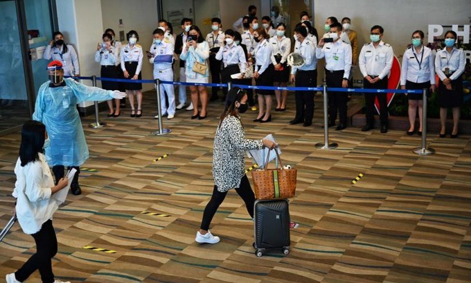 Du khách tới sân bay quốc tế Phuket, Thái Lan hôm 1/7. Ảnh: AFP.