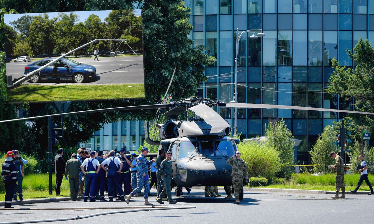 Một trực thăng Black Hawk hạ cánh khẩn cấp xuống tuyến đường phố đông người ở thủ đô Bucharest, Romania và chém đổ cột đèn.