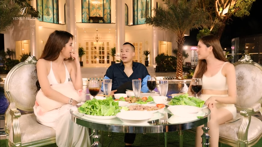 Bộ ba gồm ông trùm và hai "chân dài" trong bữa tiệc tối tại biệt thự