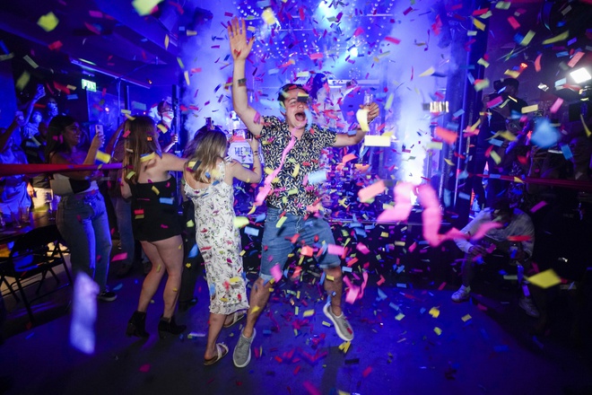 Nhiều người trẻ tại London, Anh ngay khi vừa bước sang ngày 19/7 đã đổ xô đến các hộp đêm để tham gia những sự kiện âm nhạc đầu tiên không có hạn chế nào kể từ khi đại dịch bắt đầu vào năm ngoái. Họ nhảy múa suốt đêm ăn mừng đất nước dỡ bỏ hầu hết quy định về Covid-19, theo Reuters.