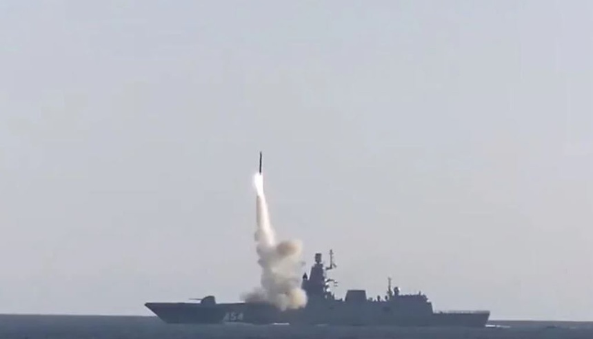 Ngày 19/7, tên lửa siêu vượt âm Zircon được phóng đi từ tàu hộ vệ Đô Đốc Gorshkov của Nga. Ảnh: Bộ Quốc phòng Nga.