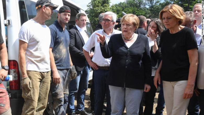 Thủ tướng Đức Merkel (thứ hai bên phải) tới thăm Schuld sau khi làng này bị ngập lụt. Ảnh: CNN