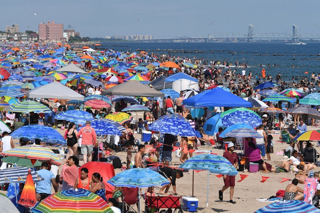 Bãi biển ở New York chật kín người trong dịp Quốc khánh Mỹ (Ảnh: New York Post).