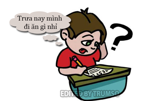 Tèo đang ngồi trong phòng thi, bạn gái ngồi ngay ở phía trước.