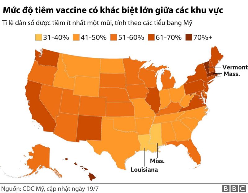 Các bang ở phía đông bắc có xu hướng là một trong những quốc gia có tỷ lệ tiêm chủng vaccine cao nhất - với khoảng 75% người dân ở Vermont và Massachusetts được tiêm ít nhất một liều.