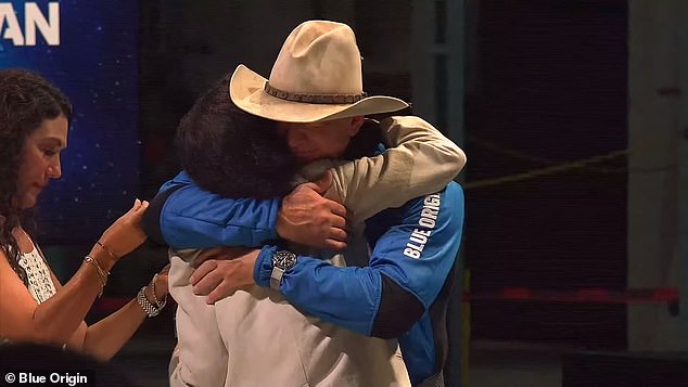 Sau khi tỷ phú Amazon hạ cánh an toàn về đất liền, ông Jeff Bezos được chào đón bởi vòng tay của người thân trong gia đình và bạn bè. Đặc biệt, dư luận đều chú ý đến khoảnh khắc tỷ phú Amazon đã ôm chầm lấy một người phụ nữ đầu tiên khi đặt chân bước ra ngoài. Đây không phải là bạn gái mình, tỷ phú Amazon đã ôm lấy một người phụ nữ đặc biệt khi ông vừa kết thúc chuyến đi thành công bay vào vũ trụ.