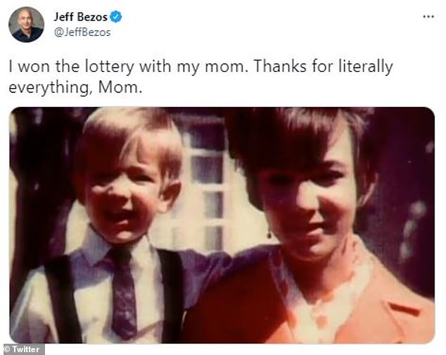 Theo đó, khi ở trong không gian trên tàu vũ trụ New Shepard, ông Jeff cùng em trai đã viết chữ lên bày tay mình và cả hai cùng nhau ghép thành: "Hi, Mom!" để gửi lời chào đến người phụ nữ mà họ yêu quý hơn tất thảy.