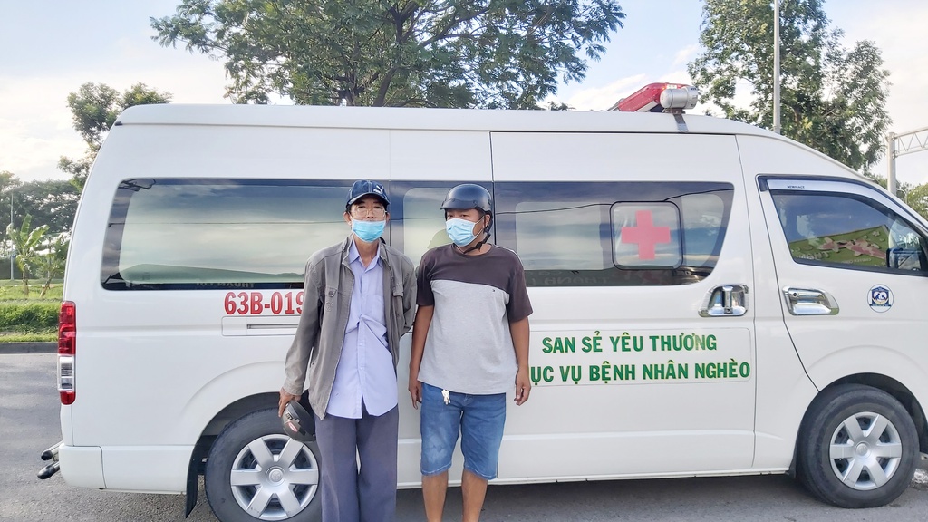 Do người thân ông L. phải chờ có giấy test nhanh kháng nguyên Covid-19 mới di chuyển về Tiền Giang để đón ông L., nên Công an P.9 đã liên hệ với xe cứu thương từ thiện của Hội từ thiện TP.Mỹ Tho hỗ trợ đưa ông L. cùng xe máy về nhà ông ở TP.HCM.